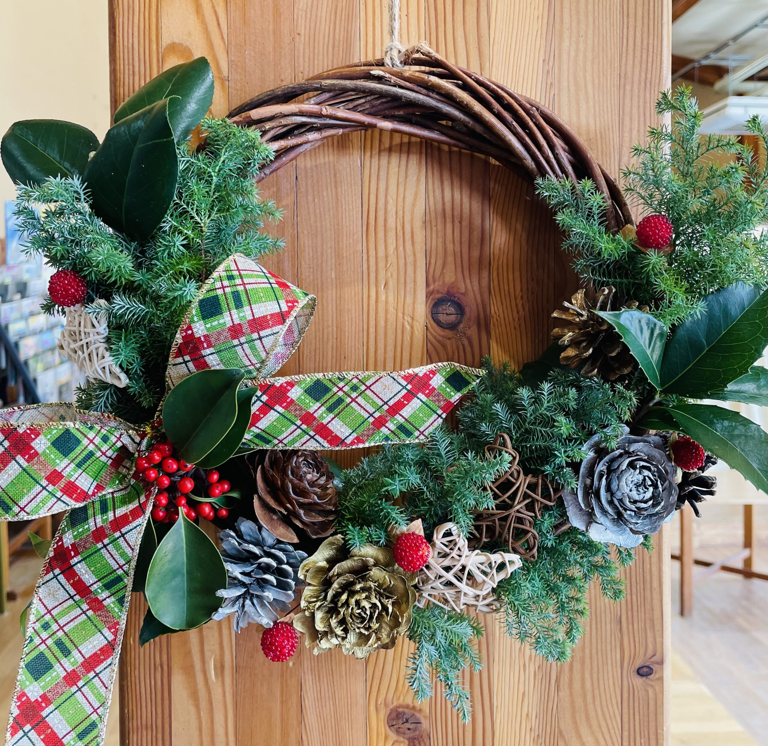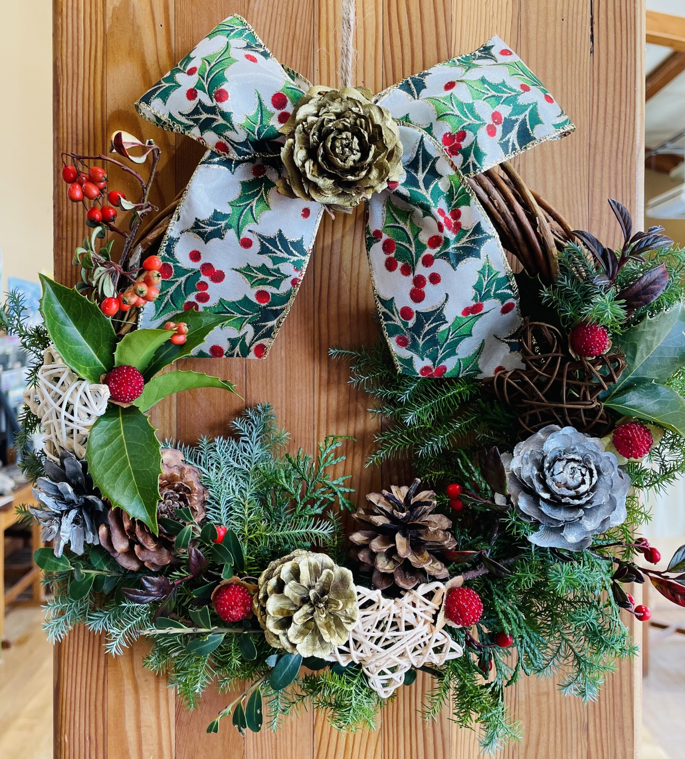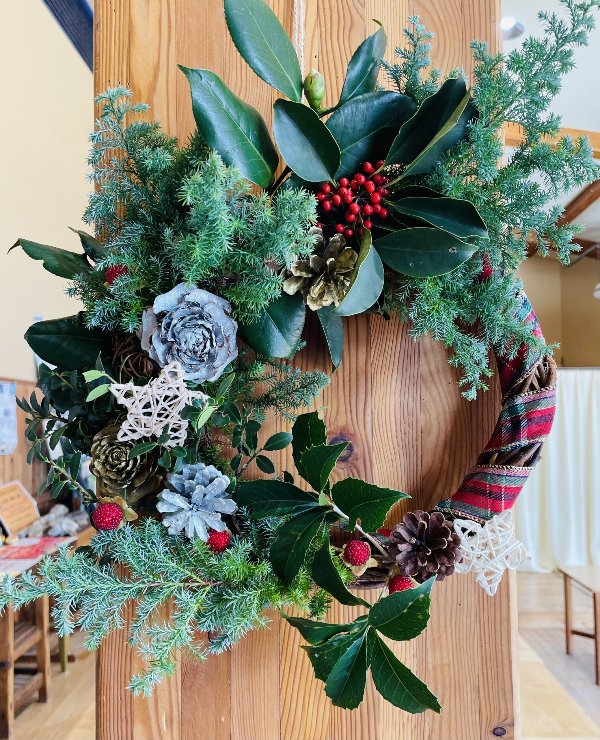 ゴールドやシルバーに染められてキラキラした松ぼっくりやシダローズ♪