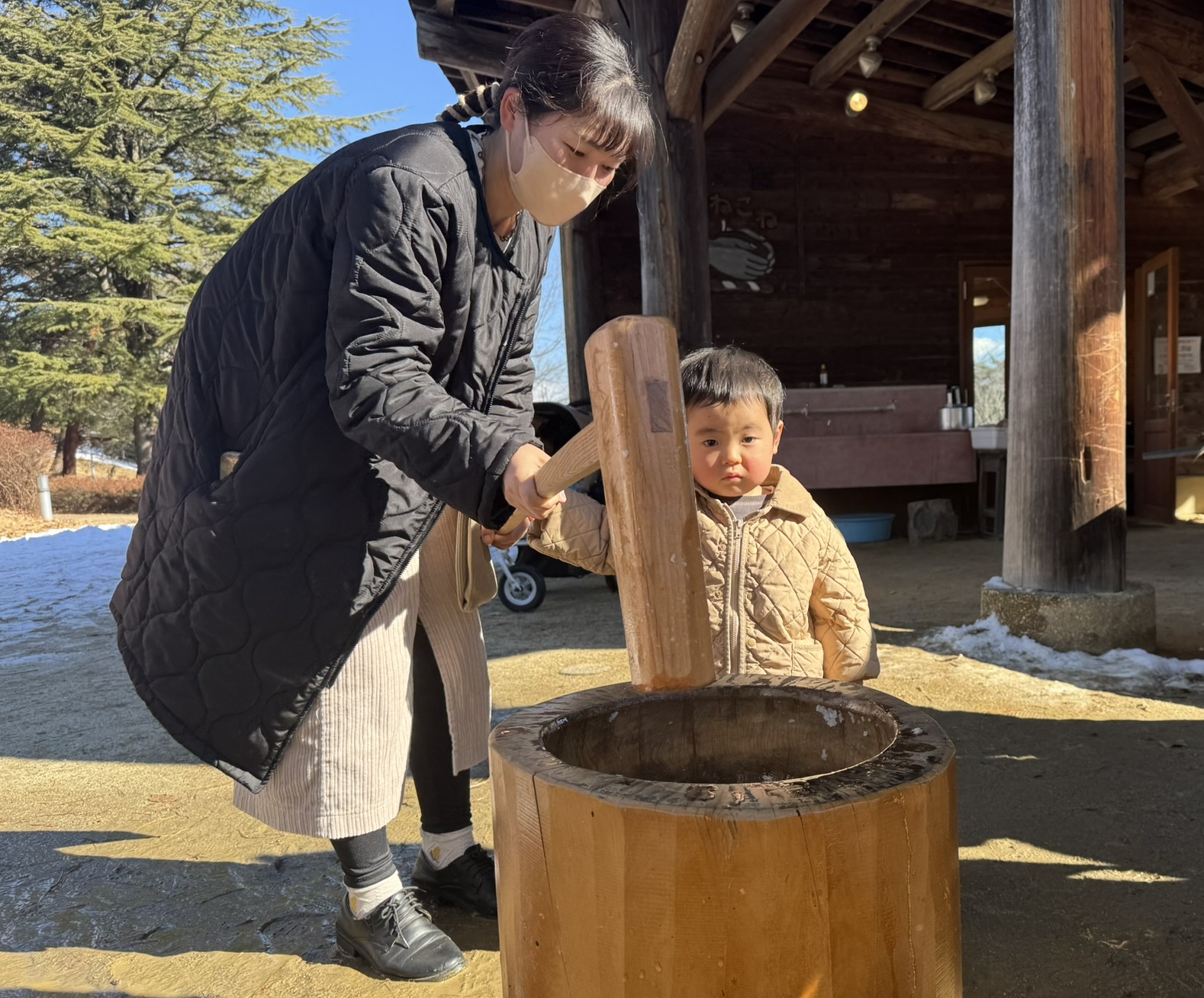 杵と臼で昔ながらのおもちつきを体験しよう!