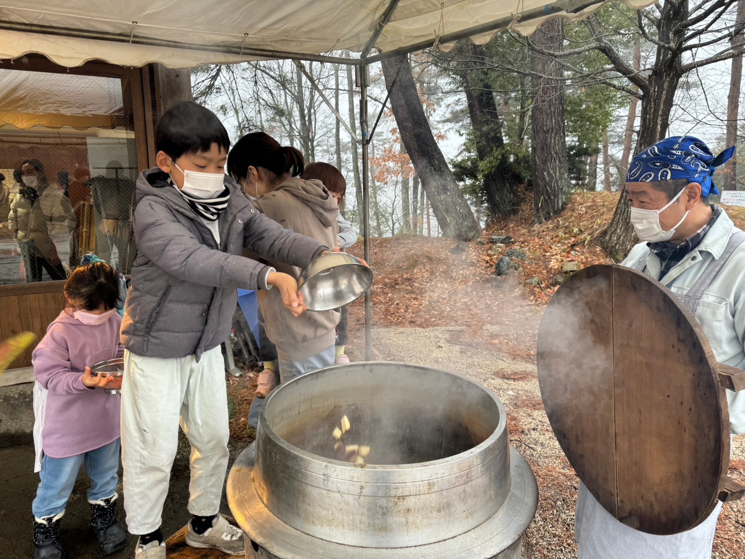 みんなですいとんをつくって、大きな鍋で煮てすいとん汁をつくります。